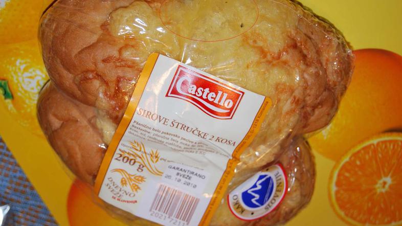 "V ponedeljek ob 18.40 sem v trgovini Lidl na Zlatem polju v Kranju kupil pakirani sirovi štručki. Ko sem prišel domov, mi je žena rekla, da je štručka zagotovo padla na tla. Pogledal sem še zaviti štručki in na siru zagledal hrošča in umazanijo," je zgrožen bralec, ki meni, da se v Lidlu delajo norca iz potrošnikov.