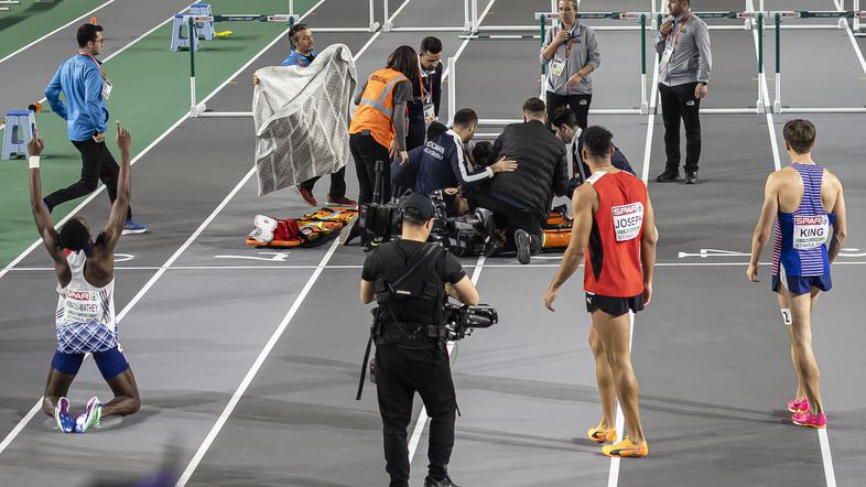 Španski atlet je moral na preiskave v bolnišnico, kjer se je izkazalo, da jo je v padcu odnesel le z udarci in odgrninami.