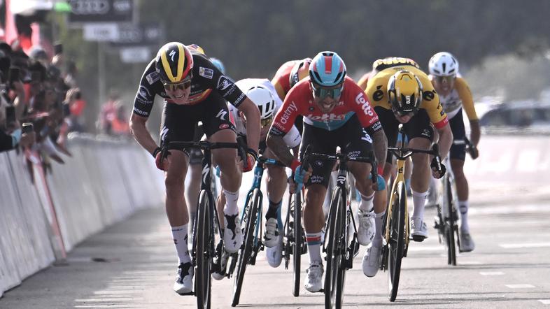 Belgijec Tim Merlier (Soudal Quick-Step) je zmagovalec prve etape kolesarske dirke svetovne serije po Združenih arabskih emiratih. Na preizkušnji od Madinata Zajeda do Al Mirfe, dolgi 151 km, je bil v sprintu drugi Avstralec Caleb Ewan (Lotto), tretji pa Britanec Mark Cavendish (Astana).
