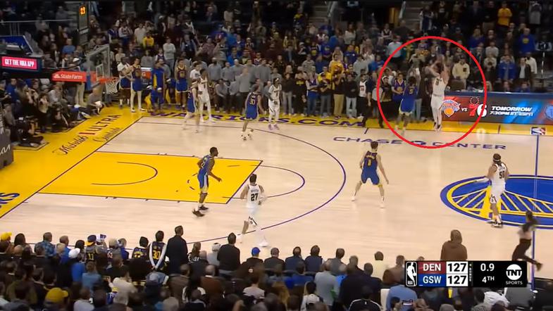 Košarkarji Denver Nuggets so na tekmi severnoameriške lige NBA po napeti končnici premagali Golden State Warriors (130:127). Potem ko je že kazalo, da bo o zmagovalcu odločal podaljšek, je odločilno trojko s približno 12 metrov dosegel dvakratni MVP lige NBA Nikola Jokić.