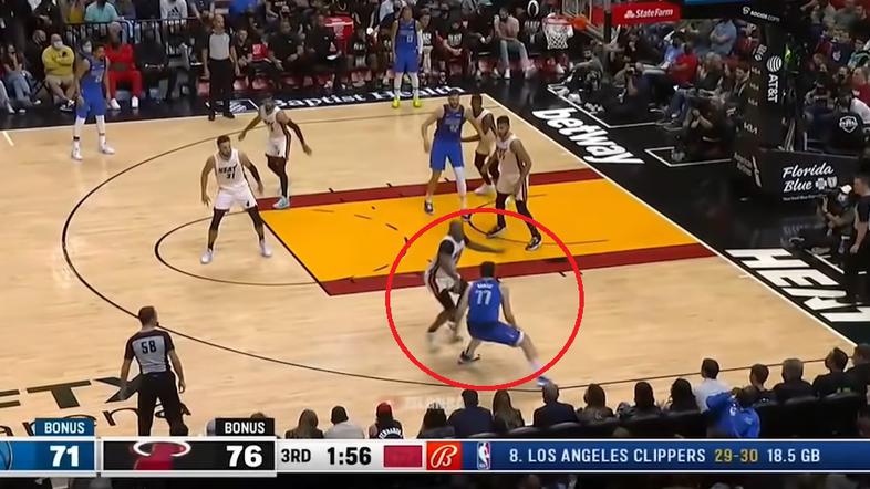 Dončić tokrat ni imel strelskega večera, je pa zato navdušil z napadalno akcijo, v kateri je razkazoval svoje izjemne sposobnosti preigravanja. Njegova žrtev je postal izkušeni obrambni košarkar Miamija PJ Tucker.