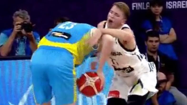 Dončić je v enem izmed napadov Ukrajine prejel sila neugoden udarec Artema Pustovjija, ki ga je s komolcem zadel v mednožje. Čeprav se je nekaj trenutkov zvijal ob bolečin, hujših posledic ni imel. "V redu je," je posnetku pripisal na Twitterju.