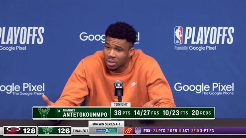 Giannis Antetokounmpo addressed the media after being eliminated by the Miami Heat. #FearTheDeer | #NBA pic.twitter.com/n7avjbxu96