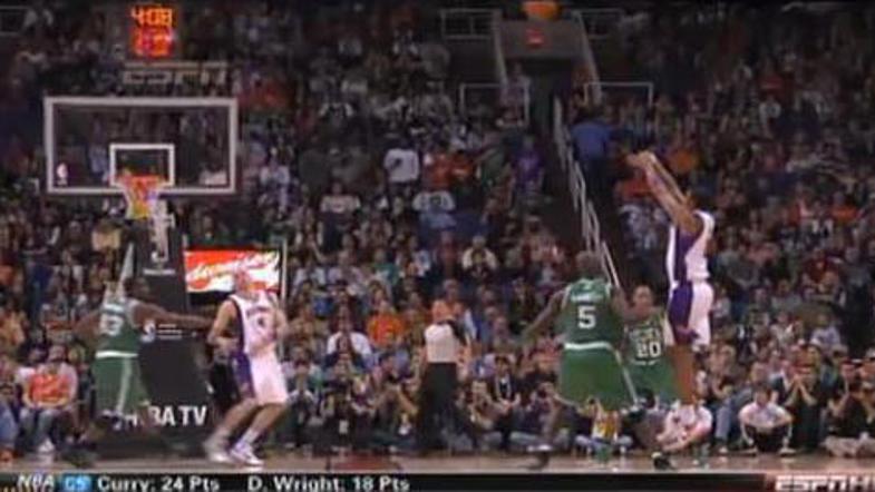 Košarkarji so v današnjih časih polni vseh "trikov". Tokrat je Kevin Garnett na petkovi tekmi Bostona pri Phoenixu v predel moškega spolovila udaril Channinga Fryja, ki je metal na koš. Tu je video.