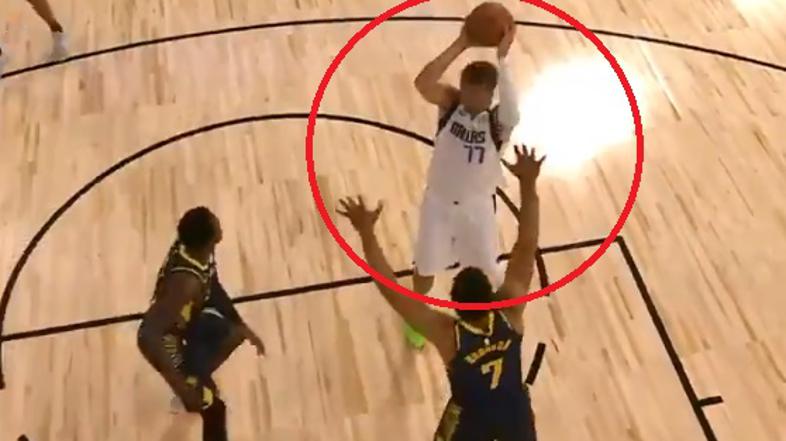 Slovenec je vodil napad pri vodstvu Dallasa z 10:6, za hrbtom pa ga je spremljal Victor Oladio. Ta mu je poskušal izbiti žogo, a je Dončić pravočasno zamenjal roki. Ustavil se je na črti za proste mete, nato pa postregel s ščepcem Lukove čarovnije.