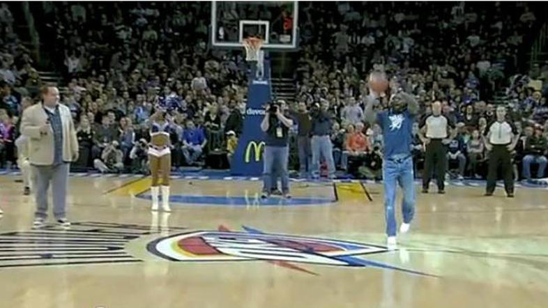 V videu si oglejte met s sredine košarkarskega igrišča, ki je navijaču Oklahome Thunder Robertu Yandersu pred dnevi prinesel nagrado 20.000 ameriških dolarjev. Lepo božično darilo, ni kaj.