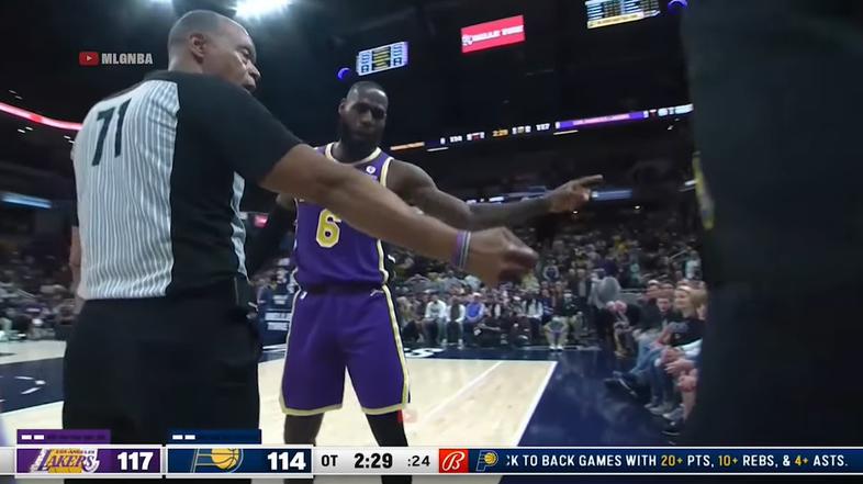 Štirikratni MVP lige NBA je manj kot tri minute pred iztekom podaljška sodnika pocukal za rokav in ga odpeljal k prvi vrsti, kjer je zahteval, da mladi par nemudoma zapusti dvorano.