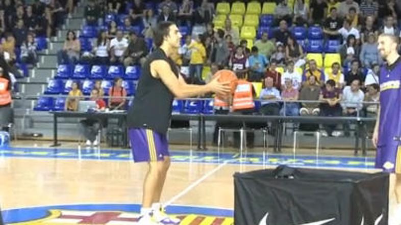 Lakers so v sodelovanju z Barcelono pred četrtkovo košarkarsko tekmo, na kateri bodo najverjetneje zaigrali trije Slovenci (Saša Vujačić, Jaka Lakovič in Erazem Lorbek), pripravili odprt trening za več kot pet tisoč katalonskih otrok. Na ekshibiciji je vidno vlogo imel tudi Saša Vujačić, ki je zadel met s sredine. In to kar obrnjen s hrbtom proti košu! Več v videu (na 1:30)!