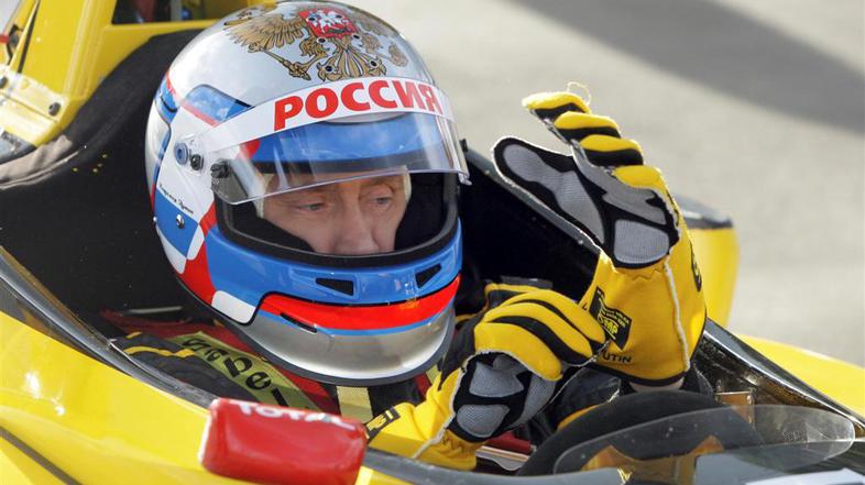 V svoji "ljudskosti" se ruski premier Vladimir Putin loti marsičesa - ježe, vijuganja na motornih saneh, lovljenja rib ... Zdaj pa se je usedel še Renaultov dirkalnik formule 1, ki ga sponzorira tudi Lada.