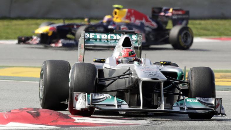 Zadnja testiranja so priložnost, da Mercedes in McLaren nadoknadita nekaj zaostanka za Red Bullom in Ferrarijem, ki sta to zimo najhitrejša. Čeprav sta Lewis Hamilton in Jenson Button zaskrbljena, pa njun šef pri McLarnu Martin Whitmarsh poudarja: "Nikar nas ne odpišite prehitro. Preprosto prezgodaj je soditi MP4-26 ali kateri koli drugi dirkalnik." Pri Mercedesu pa so v petek na stezo poslali občutno spremenjen dirkalnik, ki naj bi obrodil sadove, pravijo. In očitno jih bo res! Z 1:21,268 je bil v petek dopoldne v Barceloni najhitrejši prav Michael Schumacher. Popoldne ga je izboljšal za še nekaj tisočink in dan končal z najhitrejšim časom tedna. Še več: Nico Rosberg (Mercedes) je bil tretji. Je pa res, da sta oba odpeljala mnogo manj krogov kot denimo Fernando Alonso (Ferrari) na tretjem mestu.