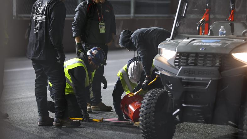 Bolidi na dirki formule 1 v Las Vegasu so se na četrtkovem uvodnem treningu pred nedeljsko premierno dirko za veliko nagrado predstavili vsega osem minut. Zaradi težav s pokrovom odtočnega jaška so prireditelji po 19 minutah nato odpovedali nadaljevanje na slovitem Las Vegas Boulevardu.