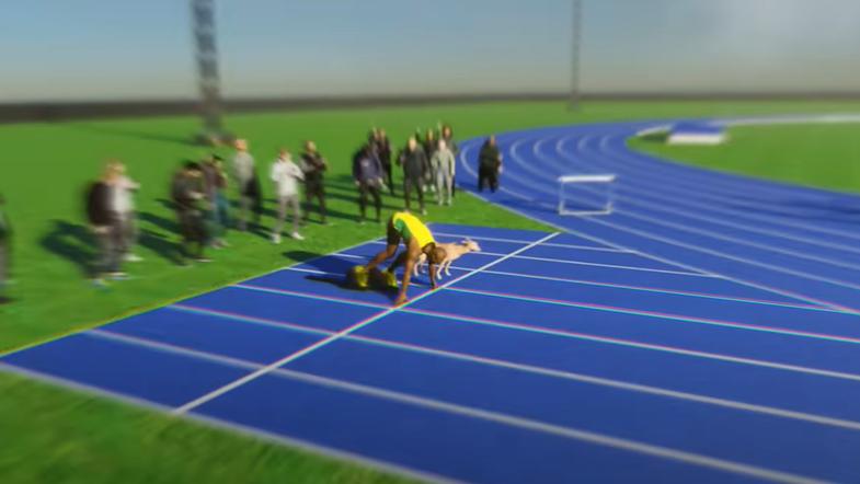 Ustvarjalci priljubljenega spletnega kanala Reigarw Comparisons so v ta namen izdelali simulacijo, ki nazorno pokaže, kako nemočen bi bil svetovni rekorder v tekmi s hrtom, ki velja za najhitrejšega psa na svetu.
