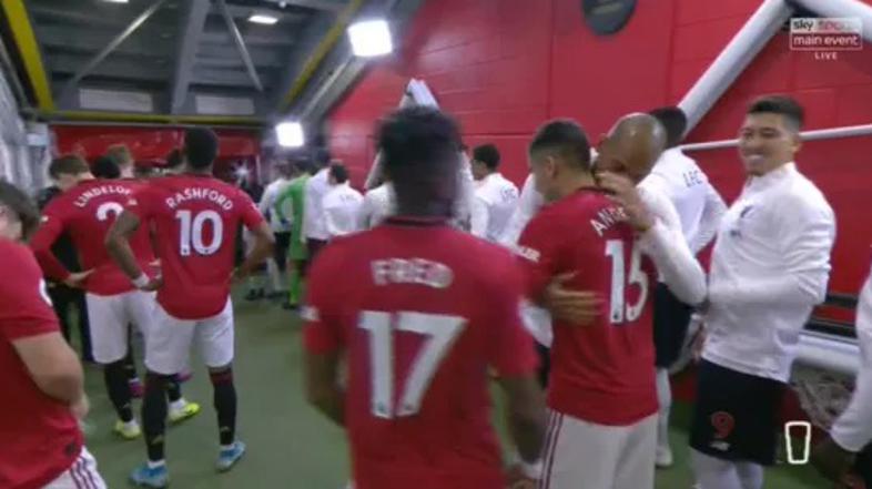 Fred in Andreas Pereira sta se pred prihodom na zelenico v tunelu stadiona v Manchestru objemala z Robertom Firminom in Fabinhom, kar je izzvalo besno reakcijo legendarnega irskega vezista.