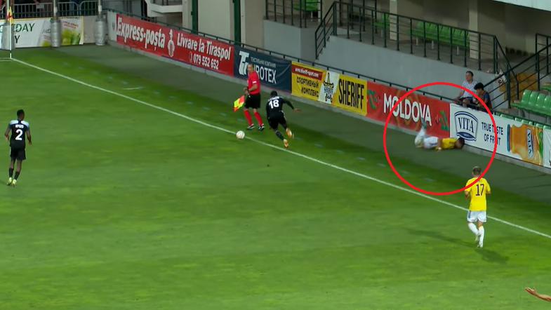 Na sinočnji tekmi v Kišinjevu jo je še pred iztekom prvega polčasa grdo skupil vezist gostujoče ekipe Nino Žugelj, ki je po grobem posredovanju domačega nogometaša z glavo trčil v betonski zid. Pri tem na srečo ni utrpel hujših poškodb, kar je za klubsko spletno stran potdil trener Radovan Karanović.