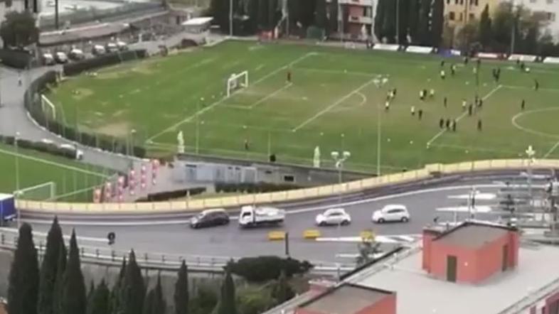 V torek popoldne so se igralci Genoe kot ponavadi mudili v svojem trening centru v soseski Pegli. Njihovo vadbo na igrišču, ki se nahaja tik ob izvozu z avtoceste A10, so prekinili streli, poroča Genovaquotidiana.com.