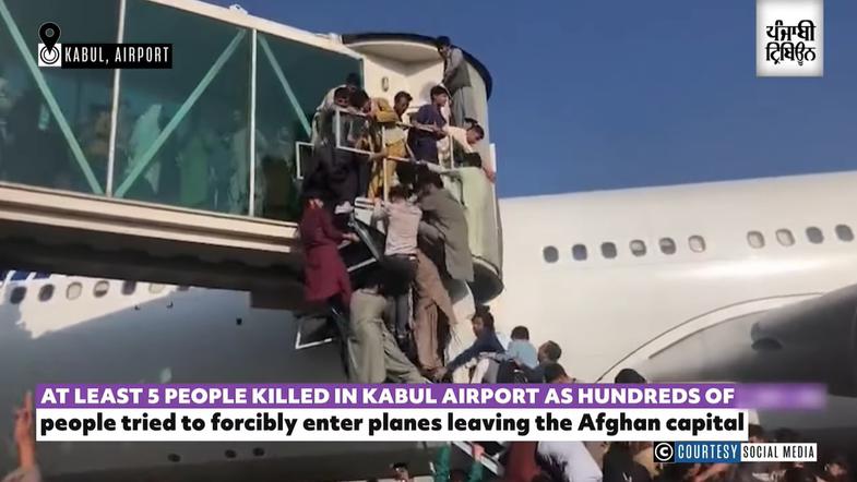 Več tisoč ljudi se je v paniki zbralo na prostoru, kjer so parkirana letala za izkrcanje in vkrcanje potnikov. Številni so plezali po ograji stopnišča, da bi se vkrcali na eno od prenapolnjenih letal. V kaotičen dogajanju je življenje izgubilo vsaj pet civilistov.