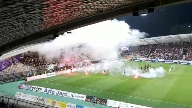 Za prekinitev derbija so z metanjem pirotehničnih sredstev v različnih fazah tekme poskrbeli tako navijači Maribora kot Olimpije. Tovrstno početje vselej predstavlja veliko nevarnost za nogometaše na zelenci, a tokrat bi jo lahko skupil tudi kakšen navijač Olimpije.