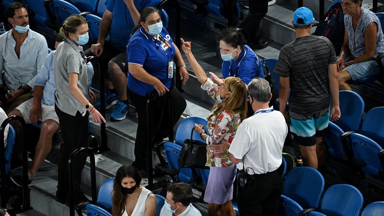 Nadal je pri vodstvu s 5:4 poskušal začeti servisno igro, a ga je pri tem večkrat zmotil hrup s tribune. "Kaj se dogaja?" je po drugem neuspelem poskusu začetnega udarca dejal španski tenisač.
