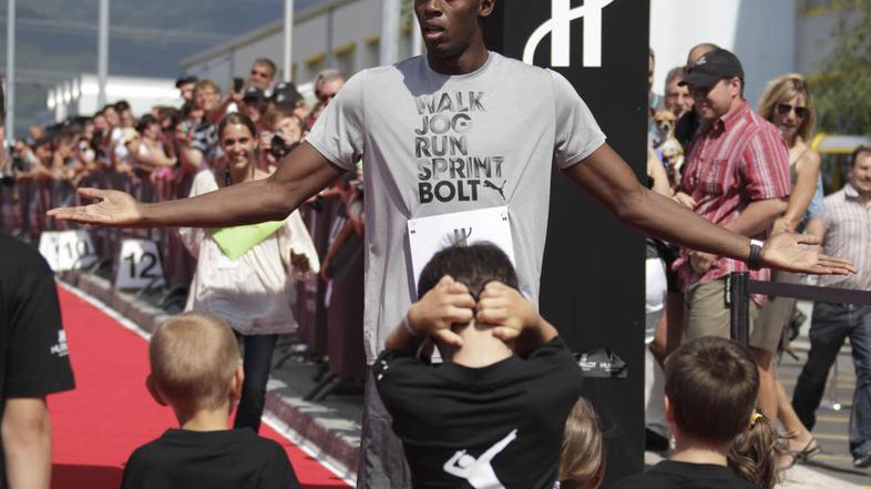 Najhitrejši zemljan Jamajčan Usain Bolt se je v torek udeležil promocijskega teka v švicarskem Nyonu. Na "tekmi" so ga premagali otroci in tako nekoliko omajali Boltov status nepremagljivosti.