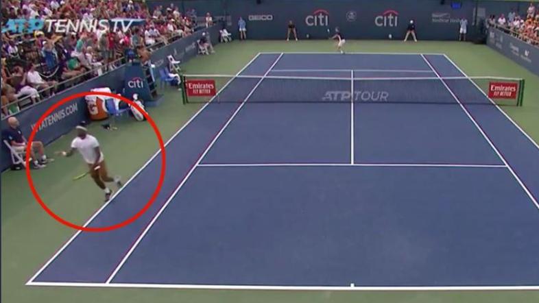 Medvedjev je bil pravočasno na žogi, a je bil Tiafoe na mestu in žogico z nekaj napora poslal v prazno polje. Misleč, da je osvojil točko, je mreži obrnil hrbet in pričel slaviti, saj niti približno ni računal, da je nasprotnik še vedno v igri. A se je uštel.