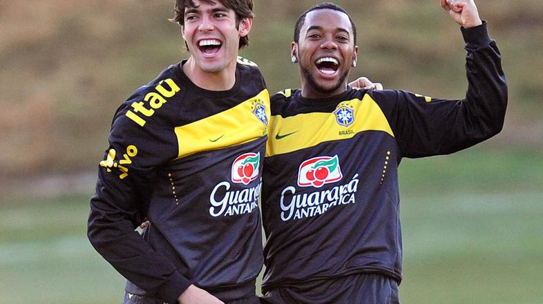 Brazilska zvezdnika Robinho in Kaka sta se na treningu pomerila v ciljanju prečke. Medtem ko je Robinho zadel dvakrat, Kaka ni zmogel zadeti in izgubil. Več v videu in galeriji. Smeha ni manjkalo.