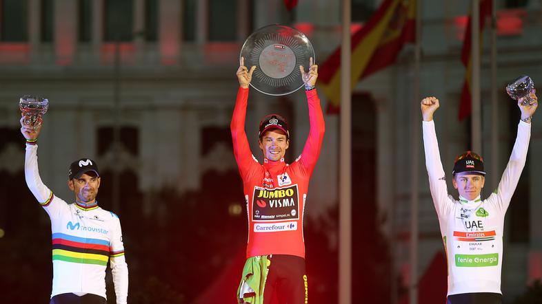 Primož Roglič je na zmagovalnem odru dirke po Španiji zagotovo bolj užival kot v začetku junija v Veroni, kjer se končala dirka po Italiji.