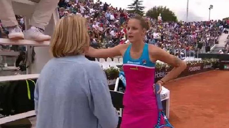 Peta igralka sveta Čehinja Karolina Pliškova se po porazu na turnirju serije Premier v Rimu ni rokovala z glavno sodnico, temveč je z loparjem večkrat besno udarila po sodniškem stolu in povzročila materialno škodo, zaradi česar bi jo lahko doletela finančna kazen.