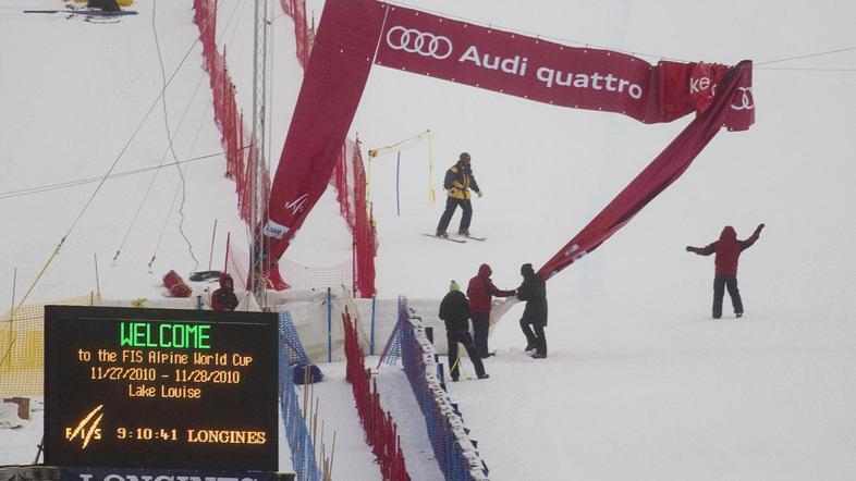 Prireditelji prvega smuka v sezoni 2010/11 v kanadskem Lake Louisu so morali drugi trening odpovedati zaradi močnega vetra. Tekma bo v soboto, za petek pa načrtujejo še en trening.