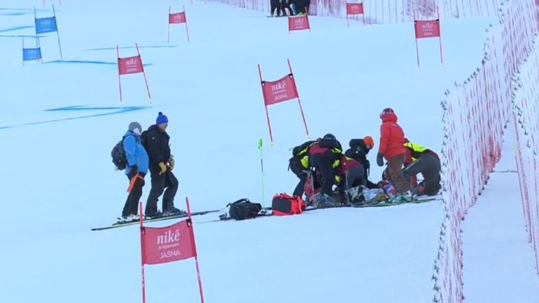 Po mučnih minutah so tekmovalko s strmine evakuirali z reševalni sanmi. Ko je šla mimo prostora z navijači, je svojim slovaškim privržencem pomahala.