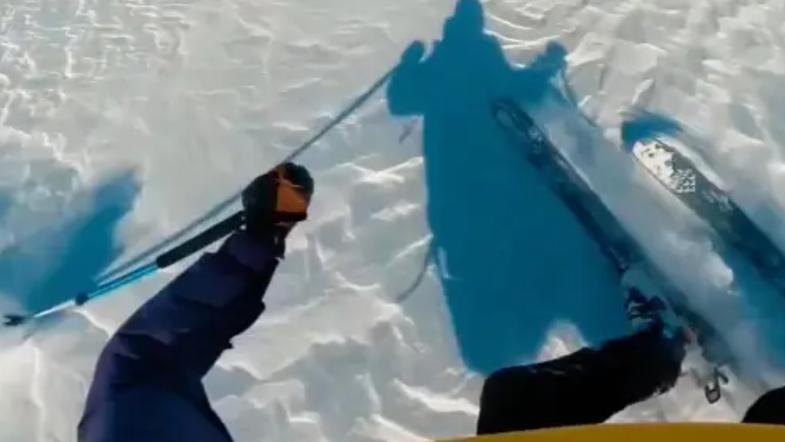 Izkušeni član francoske ekstremne športne skupine Les Powtos je doživel grozljivo izkušnjo med smučanjem v francoskih Alpah.