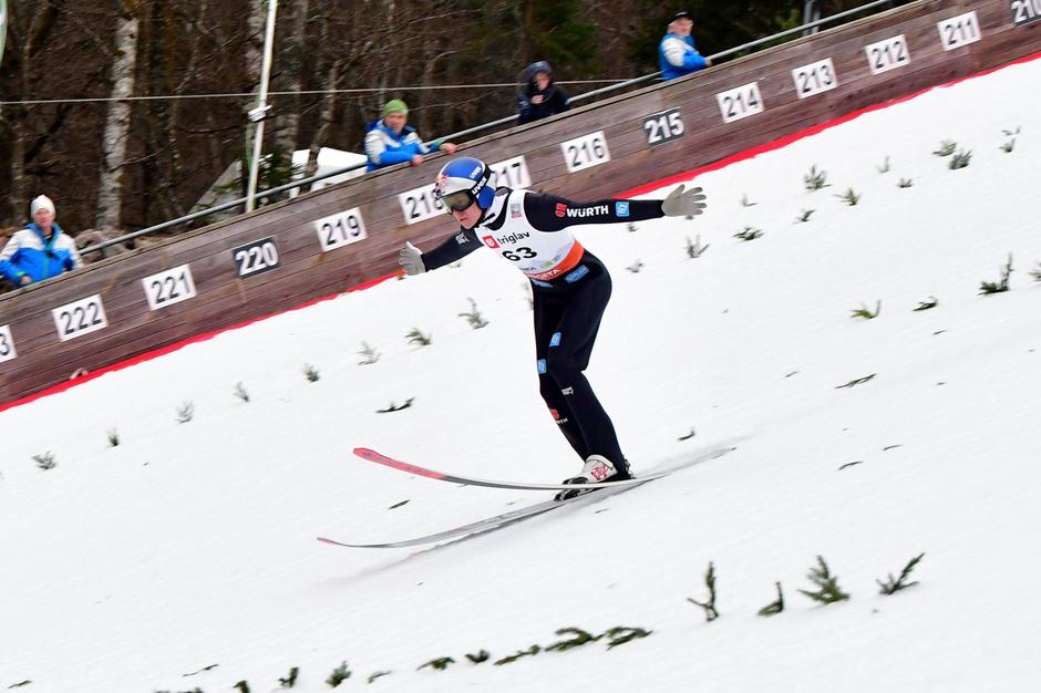 Anže Lanišek je pristal pri 202 metrih, kar je na koncu zadoščalo za 13. mesto. Bolje kot na treningih je skočil Lovro Kos, ki je vpisal daljavo 200,5 metra in se suvereno uvrstil med 40 najboljših, ki se bodo jutri udarili na popoldanski tekmi.