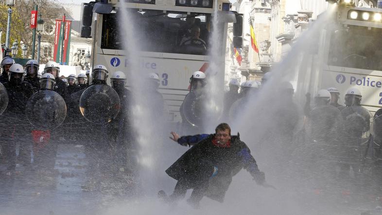 Bruselj je danes preplavilo več tisoč protestnikov, ki nasprotujejo varčevalnim ukrepom. Nekatere izgrednike so morali miriti z vodnimi topovi. googletag.cmd.push(function() { googletag.display('divInArticle'); });