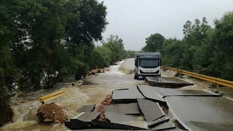 O močnem deževju poročajo tudi z območij južneje od Zadra, Dubrovnik je bil včeraj videti kot Benetke, s poplavljenim Stradunom, kjer je voda segala mimoidočim do kolen.