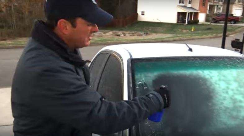 Vremenar ene od ameriških TV postaj je pred kamerami pokazal, kako se v nekaj sekundah znebite leda na vetrobranskih steklih.