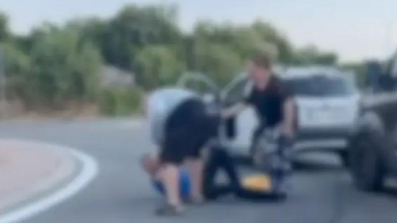 Na posnetku je videti klofutanje in besedni konflikt, in to kar sredi krožišča. Po dostopnih informacijah naj bi se stepla hrvaški in nemški državljan.