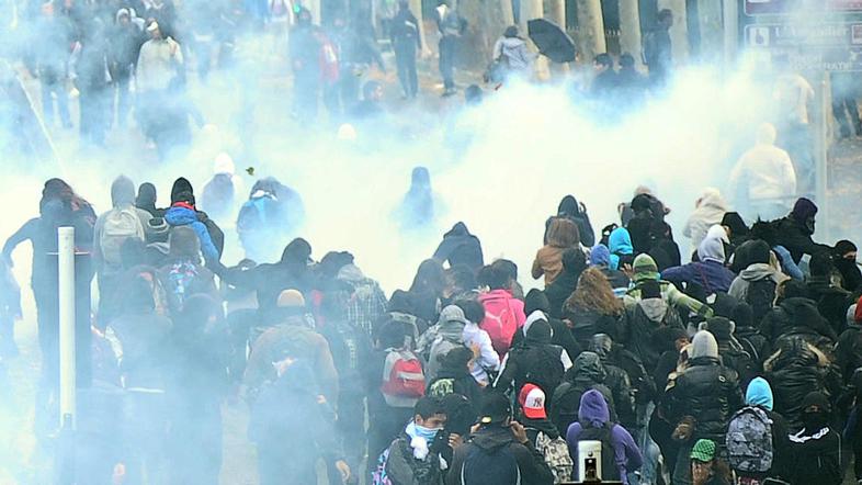 Med dijaki in policisti je že v jutranjih urah prišlo do spopadov. Skupine dijakov so prevračale avtomobile in jih zažigale, razbijale izložbe in s kamenjem napadle policiste. Ti so protestnike poskušali razgnati s solzivcem.