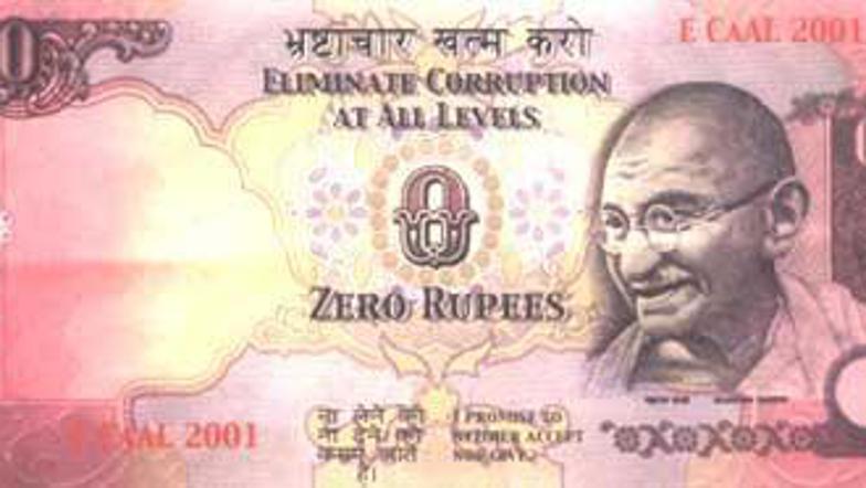 Bankovec je enak indijskemu denarju, a je na njem zapisan slogan "Ustavite korupcijo na vseh ravneh" in zagotovilo "Obljubim, da ne bom niti prejel niti dal podkupnine".