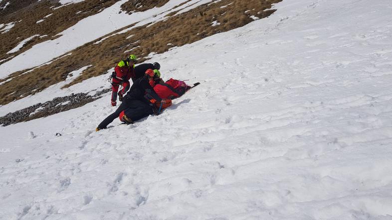 Najprej je poletel v gore, dopoldan okoli 11. ure se je namreč na območju Vrtače huje poškodovala tuja planinka. "Zdrsnila je na spolzki podlagi. Pri daljšem drsenju na nevarnem območju sta jo pod potjo opazila dva slovenska planinca, ki sta se zato hitro "vkopala" v sneg in jo uspela ustaviti ter zadržati do prihoda reševalcev," navaja predstavnik za odnose z javnostmi PU Kranj, Bojan Kos. Dodaja, da bi planinka brez rešiteljev drsela še dlj, podlaga kjer je bila, je namreč "nevarna kombinacija ostrih skal in zbitega snega."