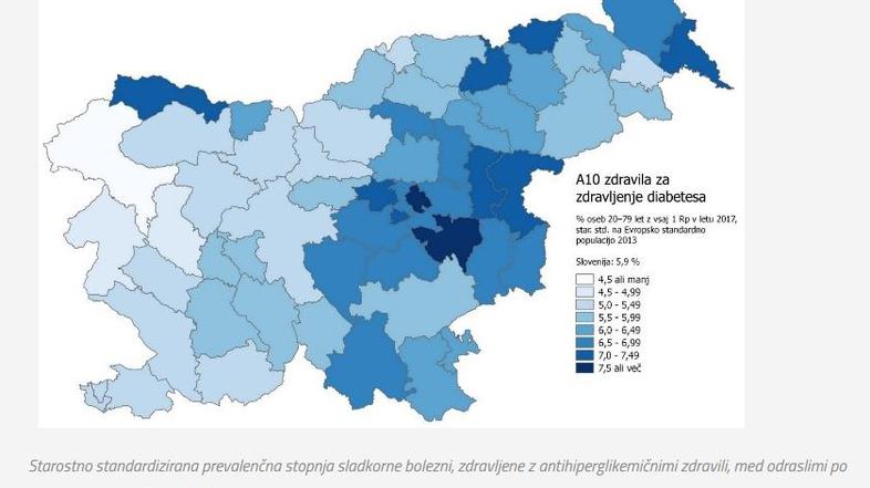Na Nacionalnem inštitutu za javno zdravlje (NIJZ) ob tem ugotavljajo velike rezlike med regijami. "Sladkorna bolezen je pogostejša v vzhodnem predelu države z največjo prevalenco v Zasavju, Posavju, Savinjski in Pomurski regiji ter nekaterih območjih Podravske regije in Jugovzhodne Slovenije ter najmanjšo prevalenco v Goriški regiji," je dejal Ivan Eržen z NIJZ.